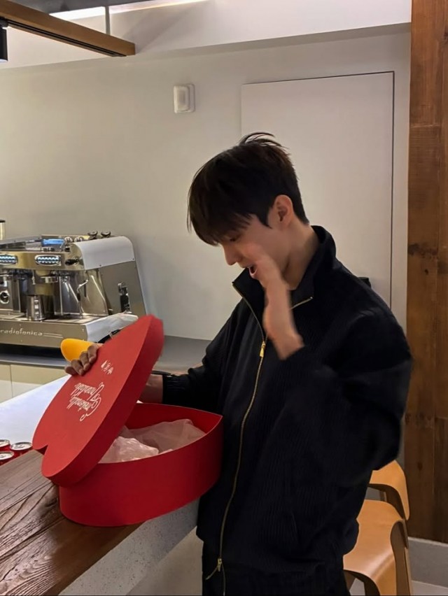 최근 큐는 자신의 SNS에 하트 모양 구조물과 빨간 커튼이 배경인 사진을 게재하며 팬들에게 애정을 표현했다. 흰색 배경에 붉은 커튼이 어우러진 공간에서 찍힌 사진과 함께 큐는 짧은 머리 스타일에 검은색 자켓을 입고 포즈를 취하며 세련된 분위기를 자아냈다.
