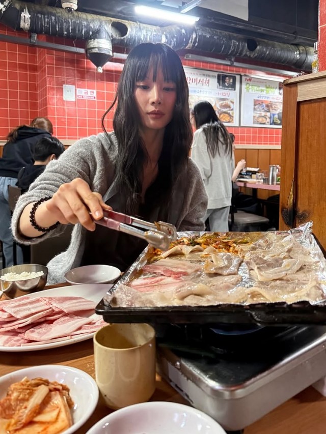 또한 고기를 굽는 모습이 담긴 사진에서는 식당 내부 테이블에 앉아 자신만의 손맛을 뽐내는 듯한 모습이 눈길을 끌었다. 설아는 그릴 위에서 능숙하게 고기를 뒤집으며 특유의 차분한 분위기를 자아냈다.