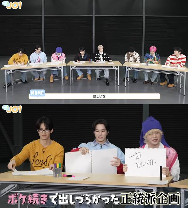 지난 20일 JO1 공식 유튜브 채널에 공개된 'EP.103 제2회 기획 회의' 영상에서는 멤버들이 세 팀으로 나뉘어 향후 콘텐츠로 제작될 최종 아이템 3가지를 선정하는 과정이 담겼다.