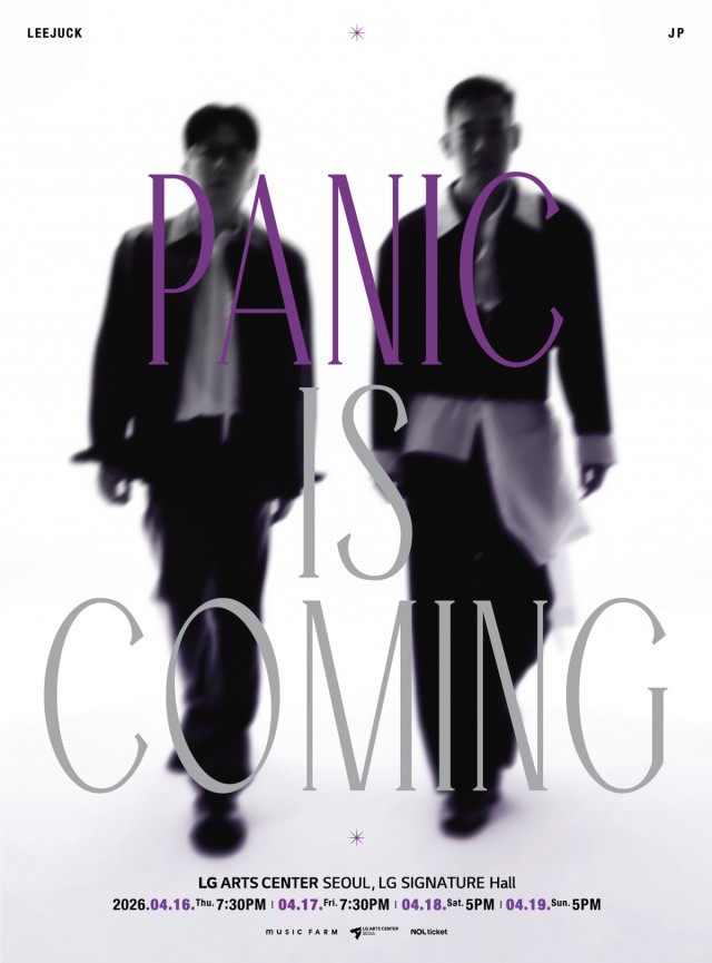 싱어송라이터 이적과 래퍼 김진표로 구성된 듀오 패닉이 20년 만에 단독 콘서트를 개최한다. 이번 공연은 '2026 패닉 콘서트 패닉 이즈 커밍'이라는 제목으로, 4월 16일부터 19일까지 4일간 LG아트센터 서울, LG SIGNATURE 홀에서 진행된다. 공연 시간은 평일인 목요일과 금요일 오후 7시 30분, 주말인 토요일과 일요일 오후 5시로 정해졌다.