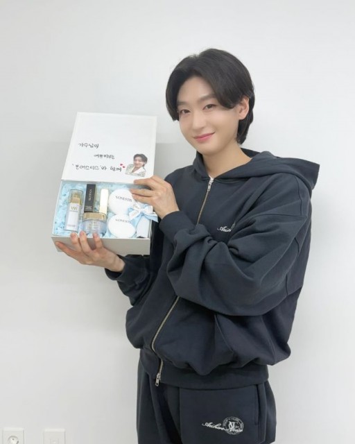 공개된 사진 속 김용빈은 편안한 네이비 톤의 후드 집업 차림으로 투명한 피부를 뽐내며 원조 '트롯 프린스'다운 청초한 비주얼을 자랑했다. 특히 그가 들고 있는 제품 상자에는 '가수님의 예쁜 피부는 본에스티스와 함께'라는 애정 어린 문구가 적혀 있어 눈길을 끈다.