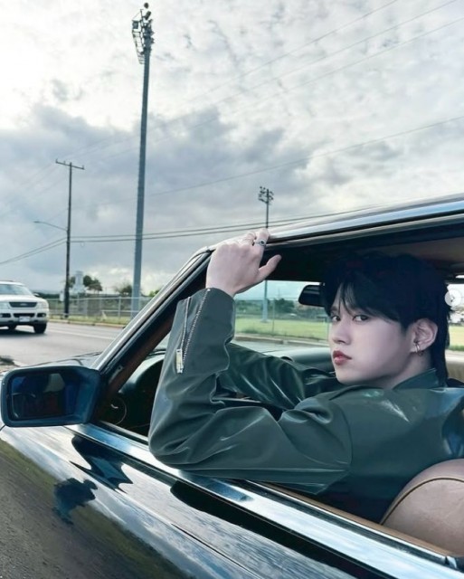 공개된 사진 속 루키는 클래식한 자동차 운전석에 앉아 창밖으로 몸을 살짝 내민 채 카메라를 응시하고 있다. 올리브 그린 컬러의 가죽 재킷을 완벽하게 소화한 그는 날카로운 턱선과 깊은 눈빛으로 마치 영화 속 한 장면 같은 분위기를 자아냈다. 특히 자연스럽게 차체에 올린 손과 세련된 액세서리는 그의 힙하면서도 고급스러운 매력을 한층 돋보이게 한다.