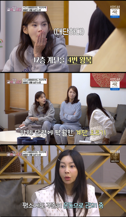 황신혜는 평소 즐겨하는 운동으로 계단 오르기를 언급하며 "12층 계단을 4번 왕복한다"고 밝혔다. 이는 주위를 놀라게 하는 발언이었다. 황신혜는 "(계단 오르기는) 일반적인 걷기보다 열량 소모가 훨씬 많고 하체 근육 단련에 매우 효과적"이라고 설명했다. 계단 운동의 장점에 대해 구체적으로 설명하며, 자신의 운동 루틴을 강조했다.