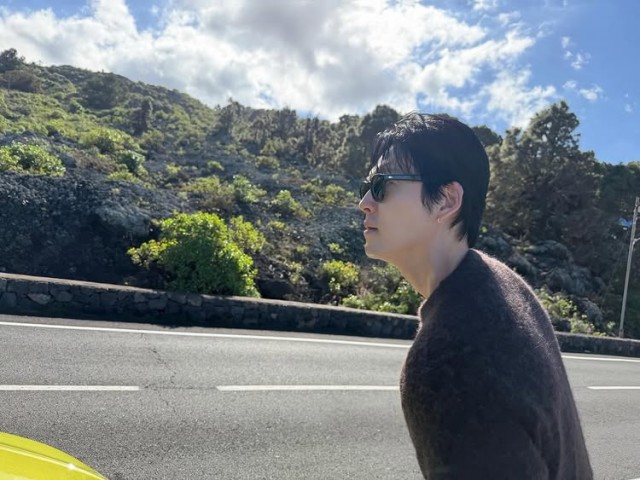 배우 김우빈이 갈색 스웨터와 청바지를 착용한 채 자연 속에서 여유로운 일상을 공개했다. 그는 선글라스를 착용하고 산과 푸른 식물이 어우러진 배경을 배경으로 측면을 바라보며 걷거나, 차량 앞에 서서 모습이 포착되기도 했다. 흰색 건물과 도로 표지판이 보이는 곳에서도 여러 각도에서 담긴 사진을 통해 차분하면서도 세련된 분위기를 자아냈다.