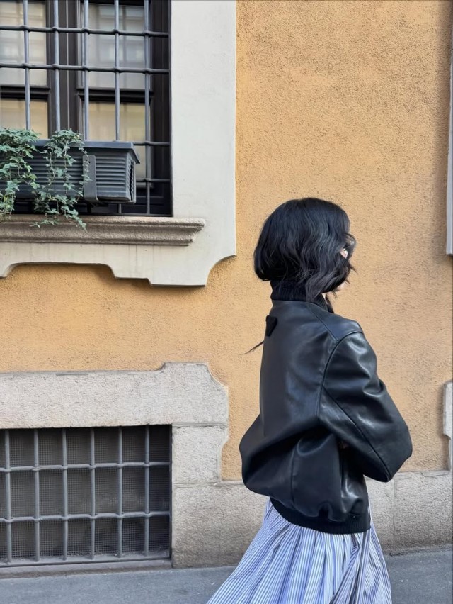배우 김태리가 세련된 스타일로 눈길을 끌었다. 최근 김태리는 검은색 가죽 재킷과 스트라이프 스커트를 매치한 패션으로 일상을 공개했다. 그는 오렌지색 벽과 창문, 식물이 어우러진 공간에서 측면을 향해 걷는 모습으로 자연스러운 분위기를 연출했다.