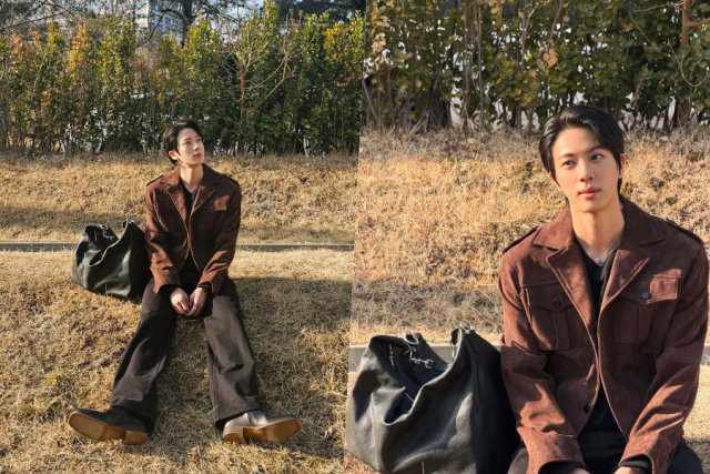 그룹 방탄소년단(BTS) 멤버 진이 컴백을 앞두고 비현실적인 비주얼을 과시하며 팬들의 관심을 집중시켰다. 진은 2월 28일 자신의 SNS에 "wow"라는 짧은 감탄사와 함께 야외에서 촬영한 사진을 공개했다. 사진 속 진은 햇살이 내리쬐는 잔디 언덕에 앉아 여유로운 한때를 보내고 있다. 그는 고급스러운 브라운 컬러의 스웨이드 자켓과 블랙 와이드 팬츠를 매치해 세련된 스타일을 선보였다. 특히 자연스럽게 내린 흑발 스타일에도 불구하고 날렵한 턱선과 조각 같은 이목구비가 돋보인다.