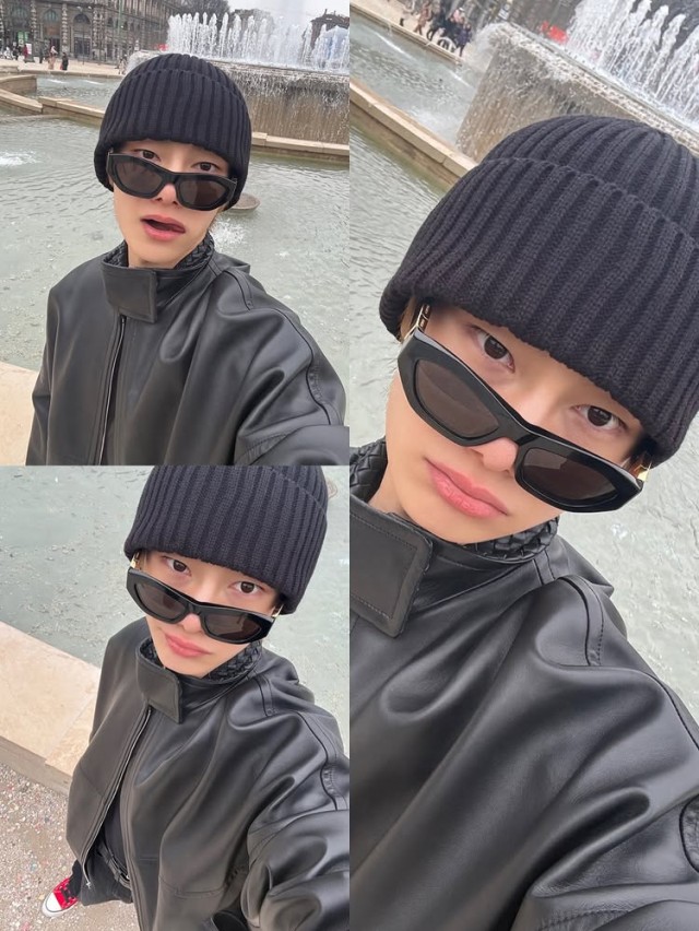 사진 속 배경에는 녹색 식물과 모던한 소파가 어우러져 있었으며, 도시의 성곽 건물이 보이는 광장과 분수가 있는 공원 등 다양한 장소에서도 여유로운 일상 모습을 담아냈다. 팔짱을 끼고 서 있거나 손으로 턱을 괴며 자연스러운 포즈를 선보이는 등 각기 다른 분위기로 다채로운 매력을 보여줬다.