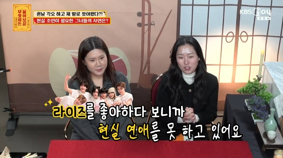 KBS JOY의 예능 프로그램 '무엇이든 물어보살'에서 아이돌 팬으로서의 생활이 현실 연애에 미치는 영향을 이야기한 20대 사연자가 등장했다. 2일 방송된 이 프로그램에는 보이그룹 '라이즈'의 팬인 두 명의 사연자가 출연했다. 이들은 "라이즈 덕후 생활을 하느라 현실 연애를 못 하고 있다. 세게 혼나러 왔다"고 출연 이유를 밝혔다.