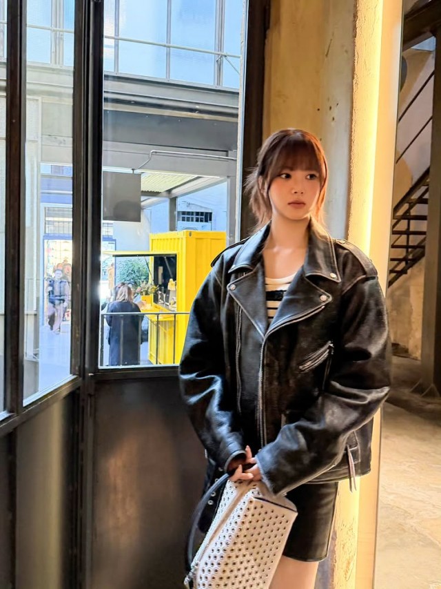 홍은채는 검은색 가죽 재킷과 미니스커트, 스트라이프 티셔츠를 매치한 시크한 룩으로 의류 매장 내부에서 옷걸이에 걸린 옷을 살펴보는 모습이 포착됐다. 집중하는 표정과 자연스러운 포즈로 프로페셔널한 패션 감각을 드러냈으며, 같은 의상에 가방을 착용해 세련된 스타일을 완성해 현장 분위기를 더욱 빛냈다.