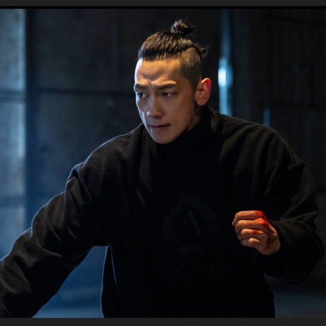비는 최근 개인 SNS에 검은색 후드티를 입고 어두운 실내 공간에서 진지한 표정으로 앞을 바라보는 모습이 담긴 사진을 올렸다. 머리를 묶은 채 움직이는 자세를 취한 그는 손에 피가 묻어 있어 긴장감과 강렬한 분위기를 자아냈다. 사진 배경에는 금속 구조물이 보이며, 마치 스릴러나 액션 장면을 연상케 한다.