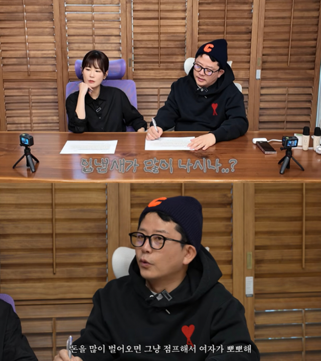 부부는 이날 구독자들의 고민을 다루기도 했다. 한 구독자는 "사랑 표현에 무관심한 아내가 고민이다. 며칠 전 당신이 하는 애정표현이 너무 과해서 진심으로 느껴지지 않는다는 말을 들었다"는 내용을 전했다. 김지민은 "스킨십을 안 해야 한다. 잠깐 안 해봐야 스킨십이 중요한 거구나"라고 해결책을 제시했다. 김준호는 "이거 남자가 삐진 거다. 남자가 (속마음이) 밴댕이다"라고 반응했다. 김지민은 "아니면 입 냄새가 많이 나시나?"라고 의문을 제기했고, 김준호는 "냄새가 아니면 돈을 못 벌어온다든지 그런 거다"라고 덧붙였다.