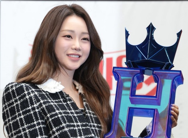 가수 홍지윤이 11일 오전 서울 마포구 상암 스탠포드호텔에서 열린 MBN 서바이벌 예능 '현역가왕3' 기자간담회에서 포즈를 취했다. '현역가왕3'은 트롯 TOP7을 뽑는 기존 오디션을 넘어, 대한민국 장르별 톱티어 현역 가수들이 태극마크를 놓고 경쟁하는 국가대표 선발 서바이벌 음악 예능이다.