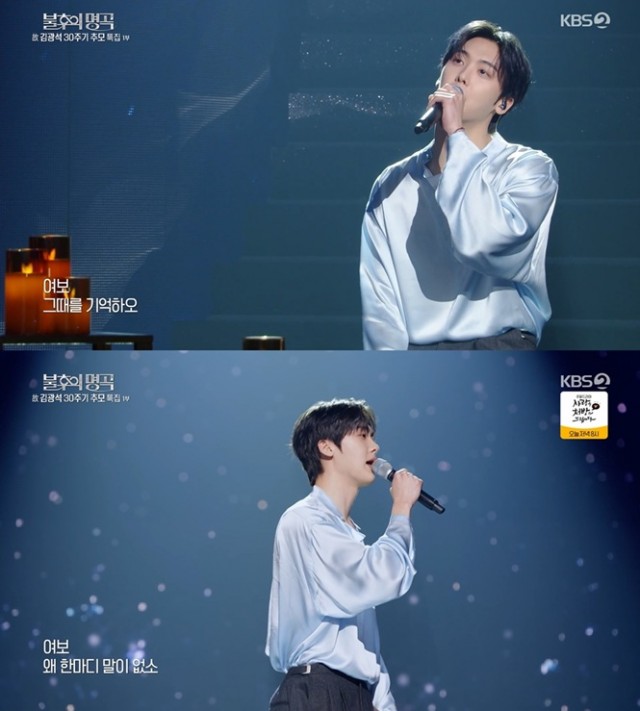 그룹 아스트로(ASTRO) 윤산하가 진심 어린 무대로 감동을 전했다. 윤산하는 3월 14일 방송된 KBS 2TV '불후의 명곡'에서 '故 김광석 30주기 추모 특집 1부'에 출연했다. 이날 윤산하는 故 김광석의 '먼지가 되어'로 오디션을 봤던 경험을 언급하며 자신이 '김광석 키즈'임을 밝혔다. 그는 "초등학교 5학년 때 첫 오디션에서 혼자 기타를 치며 '먼지가 되어'를 불렀다. 그 노래 덕분에 제가 이 자리까지 오게 된 것 같다"고 회상했다.