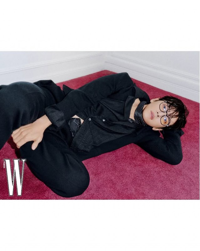 특히 검은 셔츠와 바지, 스카프를 매치한 차림으로 흰 벽을 배경으로 한 컷에서는 진중한 표정과 안경 착용으로 지적인 분위기를 더했다. 회색 정장과 넥타이 차림으로 건물 외벽 앞에 선 모습과, 체크 무늬 재킷과 넓은 바지를 착용하고 선글라스를 착용한 모습에서는 고급스러운 패션 감각을 선보였다.