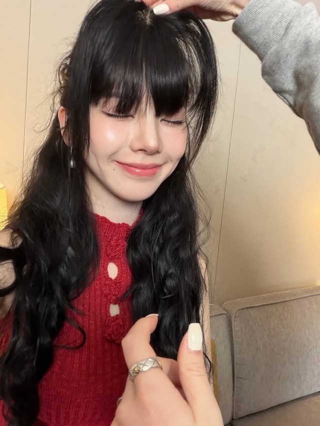 카리나는 검은색 바지에 빨간색 상의를 매치한 세련된 스타일로 거울을 바라보며 셀카를 여러 장 공유했다. 긴 곱슬머리에 독특한 귀걸이를 착용한 모습이 돋보였으며, 정면을 응시하는 눈빛에서는 자신감이 묻어났다. 배경은 단색 벽과 바닥으로 깔끔함을 더했다.