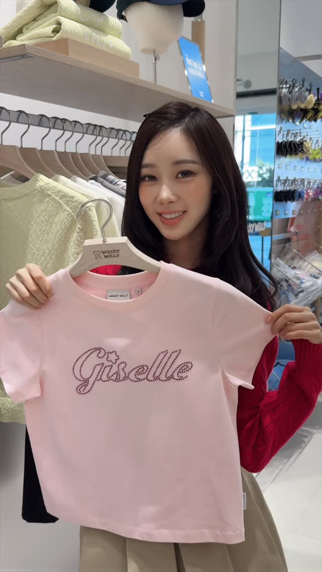 와키윌리 브랜드 뮤즈로 활동 중인 지젤은 행사에서 한 손으로 티셔츠를 살짝 들어 올리는 귀여운 포즈를 취하며 자연스럽고 다채로운 매력을 선보였다. 매장 내부에는 다양한 의류가 깔끔하게 진열되어 있었으며, 지젤은 이곳에서 부드러운 눈빛과 함께 또렷한 표정을 지어 팬들과 참석자들의 시선을 사로잡았다.