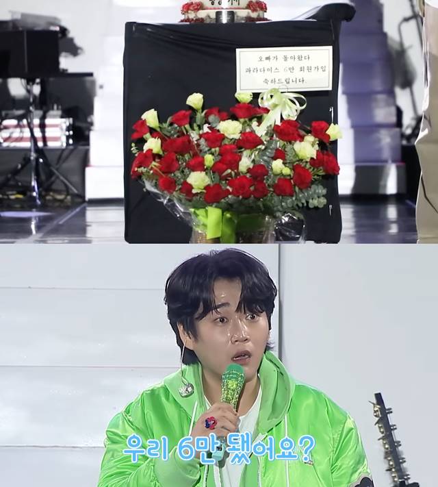최근 공개된 콘서트 비하인드 영상에서는 대구, 인천, 울산 공연을 이어가던 중 제작진과 스태프들이 준비한 깜짝 축하 파티 장면이 담겼다. 공연 준비로 분주하던 황영웅은 갑작스럽게 등장한 케이크와 ‘6만 축하’ 문구를 보고 아이처럼 환하게 웃으며 기쁨을 감추지 못했다.