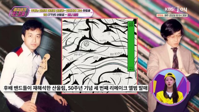 1위는 산울림의 '아니 벌써'가 차지했다. 산울림은 김창완, 김창훈, 김창익 삼 형제로 구성된 밴드로, 13집 앨범 이후 막내의 별세로 활동을 멈췄다. 산울림은 데뷔 50주년을 맞아 50곡을 재해석하는 리메이크 앨범을 준비 중이다.