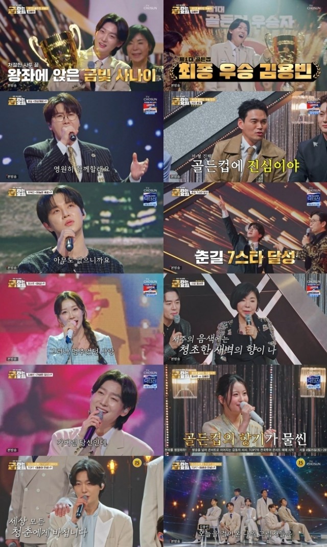 김용빈은 우승 소감으로 "생각지도 못했다"며 겸손한 마음을 전했고, "골든컵을 안고 자겠다"고 말했다. 이날 '미스터트롯3' TOP7의 신곡 '청춘아 안녕' 무대도 함께 공개됐다.
