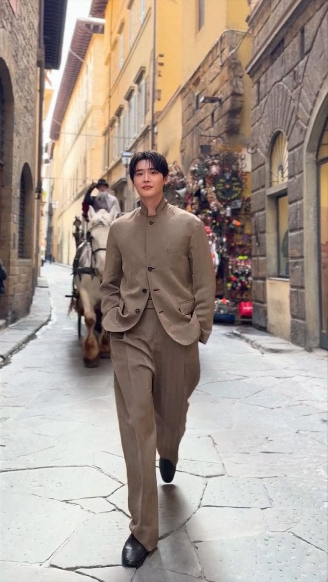이종석은 최근 자신의 SNS에 베이지색 정장 차림으로 걷고 있는 사진을 공개했다. 사진 속 그는 짧은 머리 스타일에 정면을 응시하며 미소를 띠고 있어 자연스러운 매력을 자아냈다. 배경에는 고풍스러운 건물과 장식된 나무가 어우러져 한층 분위기 있는 장면을 완성했다. 특히 이종석 옆에는 말을 탄 모습도 포착되며 이색적인 광경을 연출했다.