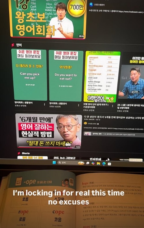 뷔는 3월 30일 자신의 소셜미디어 계정을 통해 영어로 "I'm locking in for real this time no excuses"라는 메시지와 함께 사진과 영상을 올렸다. 영상에서 뷔는 이른 아침부터 영어 회화 인터넷 강의를 들으며 원어민 발음을 따라하는 모습을 보였다. 그는 쉬운 문장을 직접 만들어보고, 자신감 있게 영어로 말하는 목소리를 공유했다.