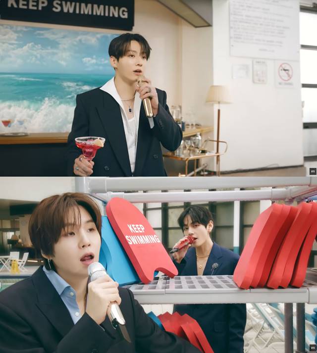 공개된 영상 속에서 방탄소년단 멤버들은 수영장을 배경으로 ‘SWIM’을 열창한다. “I just want to dive(그저 뛰어들고 싶어)”, “Spend a lifetime watching you swim(네가 수영하는 모습을 평생 보고 싶어)” 등의 가사는 멤버들의 감미로운 보컬과 어우러져 듣는 이들에게 마치 시원한 물속에 있는 듯한 착각을 불러일으킨다.