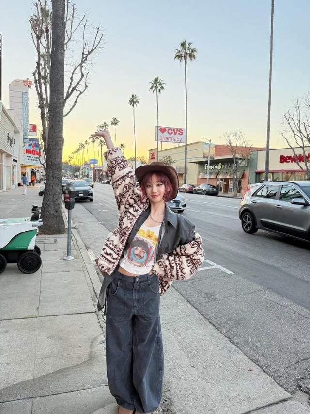또 다른 사진에서는 브라운 색상의 원피스와 부츠를 매치해 편안하면서도 트렌디한 룩을 완성했다. 자연광이 내려앉은 나무 그늘 아래 도로에서 여유로운 포즈를 취한 모습이 담겨 눈길을 끌었다.