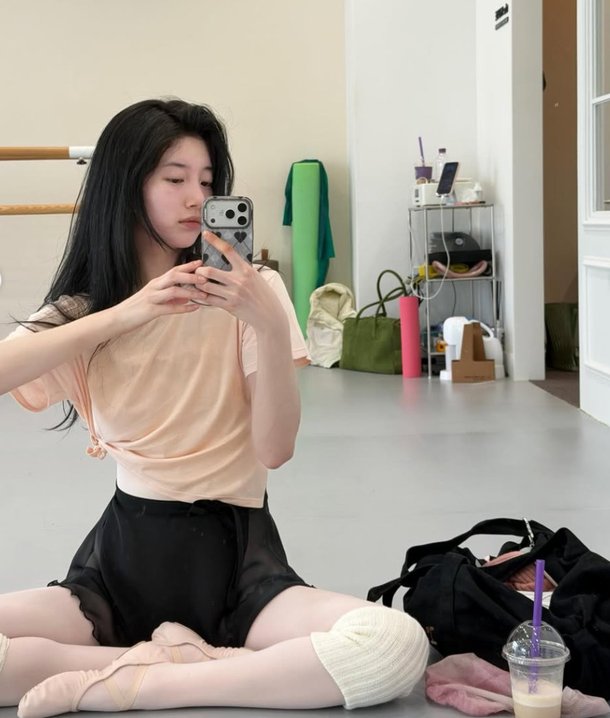 수지는 지난 4일 여러 장의 사진을 올리며 발레 동작과 스트레칭, 거울 셀카 등 다양한 모습을 선보였다. 사진에는 바(bar)를 이용한 스트레칭과 다리를 높이 들어 올리는 동작 등 유연성이 돋보이는 장면이 담겼다.