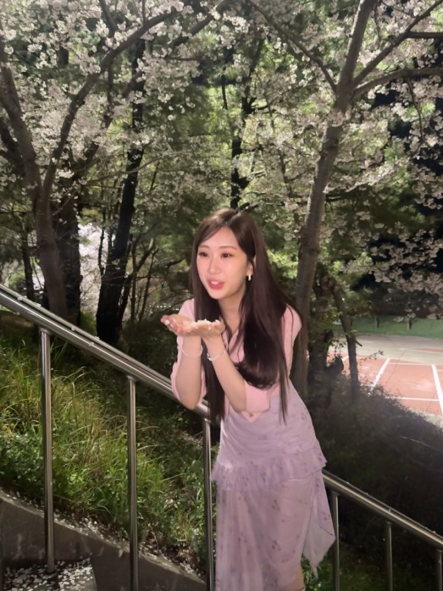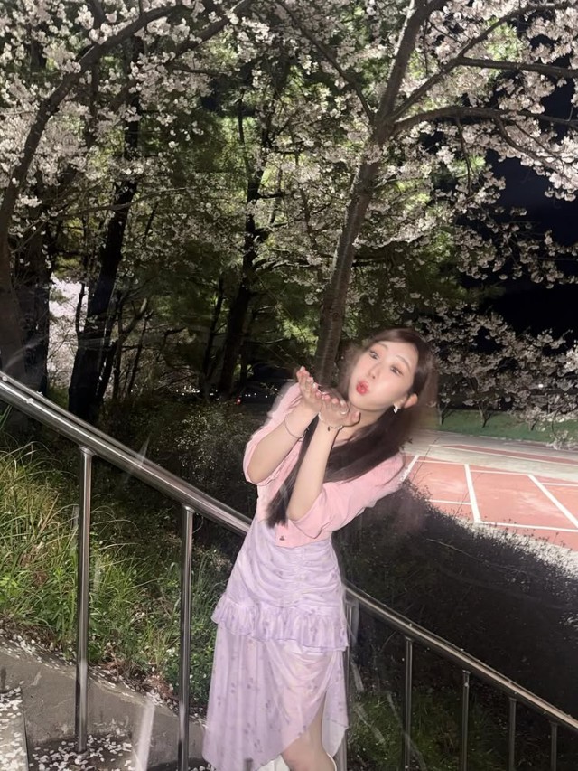 공개된 사진 속 전유진은 분홍색 재킷과 보라색 드레스를 입고 벚꽃 나무가 만개한 야외 공간에서 미소를 지으며 포즈를 취해 봄의 설렘을 한껏 담아냈다. 손으로 꽃잎을 날리거나 한 손으로 얼굴을 감싸는 자연스러운 모습으로 따뜻하고 부드러운 매력을 발산했다.