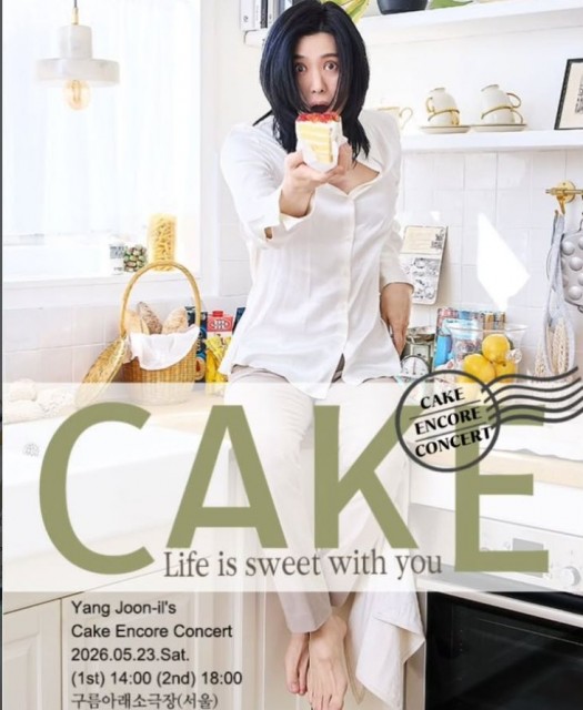 함께 공개된 포스터 속 양준일은 화사한 주방을 배경으로 케이크 한 조각을 내밀며 장난기 가득하면서도 소년미 넘치는 매력을 발산하고 있다. 포스터에는 ‘CAKE Encore Concert - Life is sweet with you’라는 문구가 적혀 있어, 지난 공연의 감동을 잇는 달콤하고 따뜻한 시간이 될 것임을 짐작게 한다.