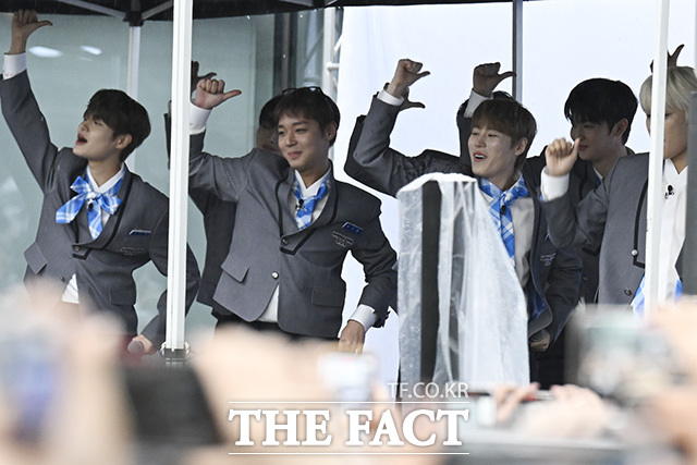 프로젝트 그룹 워너원이 6일 오전 서울 마포구 상암동 DMC 문화공원에서 열린 오프닝 세리머니 행사에 참석해 팬들과 만남을 가졌다.