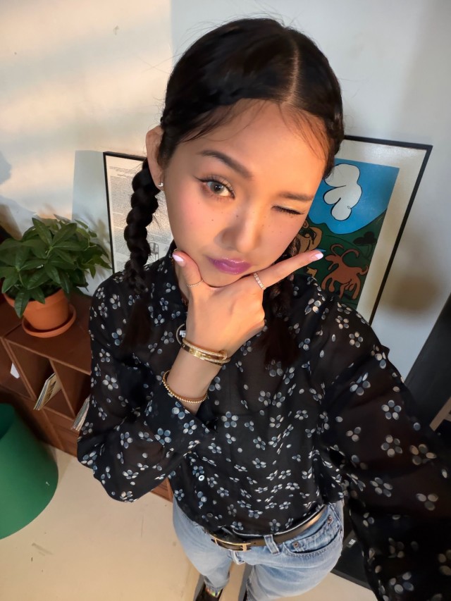 흑색 꽃무늬 블라우스에 청바지를 매치한 편안한 차림으로 실내 공간에서 한 손으로 브이 포즈를 취하며 미소 짓는 미미의 모습은 팬들에게 더욱 친근하게 다가가고 있다. 긴 머리를 두 개의 땋은 머리로 묶은 스타일 또한 눈길을 끌었다.