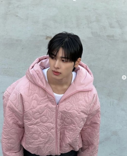 공개된 사진 속 하루는 체리 모양의 퀼팅 패턴이 돋보이는 라이트 핑크 컬러의 후드 재킷을 입고 어딘가를 응시하고 있는 모습이다. 화사한 아우터 안에 깔끔한 화이트 이너를 매치해, 과하지 않으면서도 세련된 캐주얼룩을 완성했다.