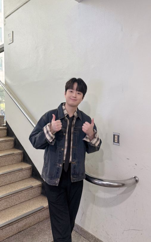 공개된 사진 속 이찬원은 방송국 계단으로 보이는 곳에 서서 카메라를 향해 환한 미소를 지으며 양손으로 힘차게 엄지손가락을 치켜세우고(쌍따봉) 있는 모습이다.