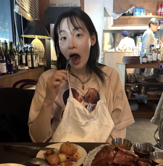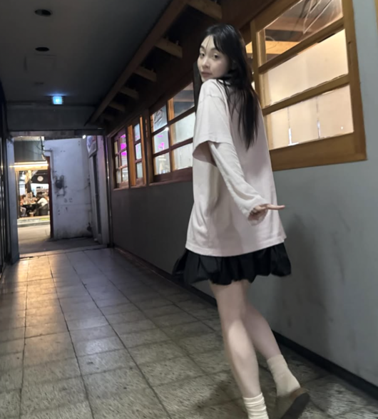 공개된 사진에서 김민하는 긴 생머리와 자연스러운 메이크업으로 모습을 드러냈다. 그는 연한 핑크색 오버사이즈 티셔츠와 블랙 미니스커트를 착용해 편안하면서도 스타일리시한 일상 패션을 선보였다. 전신 사진에서는 오버사이즈 티셔츠 아래로 드러난 다리와 실루엣이 눈길을 끌었다.