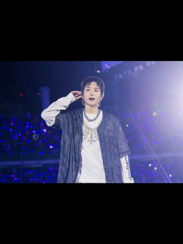 또한 슈가는 흰색 재킷과 회색 티셔츠에 검은 바지를 매치한 차림으로 '국기'를 흔들며 팬들과 소통하는 모습도 공개했다. 이외에도 회색 티셔츠에 검은 아우터를 입고 목걸이를 착용한 모습이 담긴 사진에서는 무대 위에서 관객을 향한 따뜻한 시선이 돋보였다.