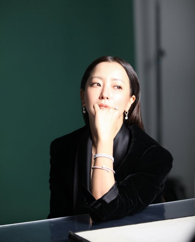 강아지를 품에 안고 공원에서 환한 미소를 짓는 장면, 빨간색 카디건을 입고 식물과 함께 있는 실내에서 손을 테이블 위에 올려놓은 채 미소를 짓고 있는 모습 등 친근하면서도 고급스러운 일상도 함께 전했다. 흰색 셔츠를 입고 손을 무릎 위에 얹은 채 정면을 응시한 사진, 검정 바지와 흰색 블라우스를 입고 펜을 든 채 테이블에 앉아 있는 모습에서는 차분하고 지적인 분위기가 묻어났다.