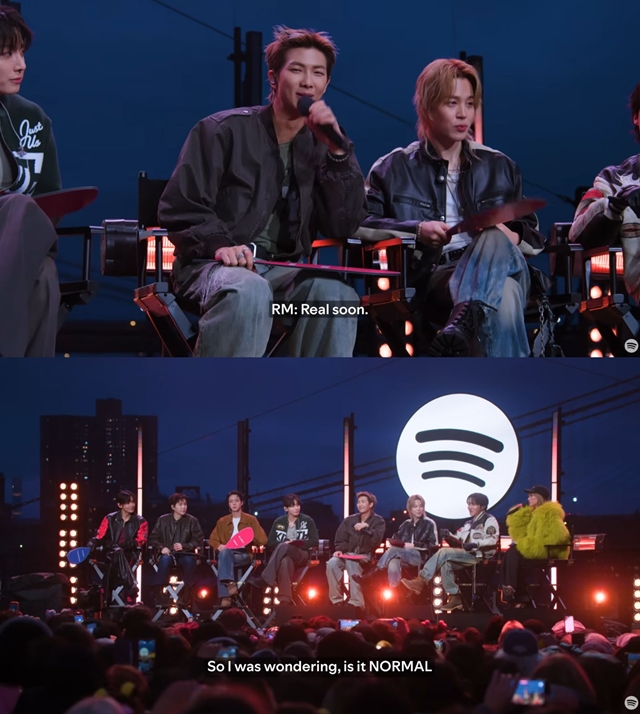 지난 15일 스포티파이(Spotify) 공식 유튜브 채널에 공개된 'Spotify In Conversation With BTS' 영상에서 방탄소년단은 미국 뉴욕 Pier 17에서 모델 겸 배우 수키 워터하우스(Suki Waterhouse)의 진행 아래 글로벌 팬(아미)들과 소통하는 시간을 가졌다.