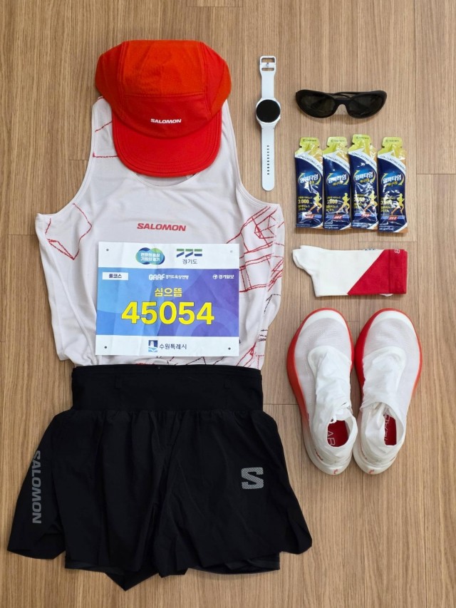 공개된 사진에는 심으뜸이 흰색 조깅 상의와 검은색 반바지를 착용하고, 모자와 선글라스, 시계 등을 포함한 마라톤 준비용품을 정성스럽게 배치한 모습이 담겼다. 이는 대회 완주를 위한 세심한 준비 과정을 보여준다.