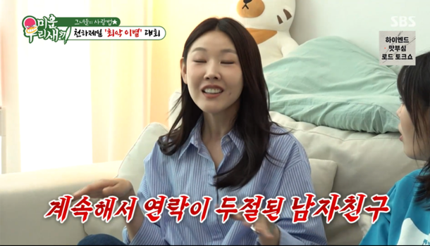 19일 방송된 '미운 우리 새끼'에서는 한혜진과 엄지윤이 김지유의 집을 방문한 모습이 전파를 탔다. 이들은 최악의 이별에 대해 대화를 나누던 중 한혜진이 과거 남자친구와의 일화를 공개했다.