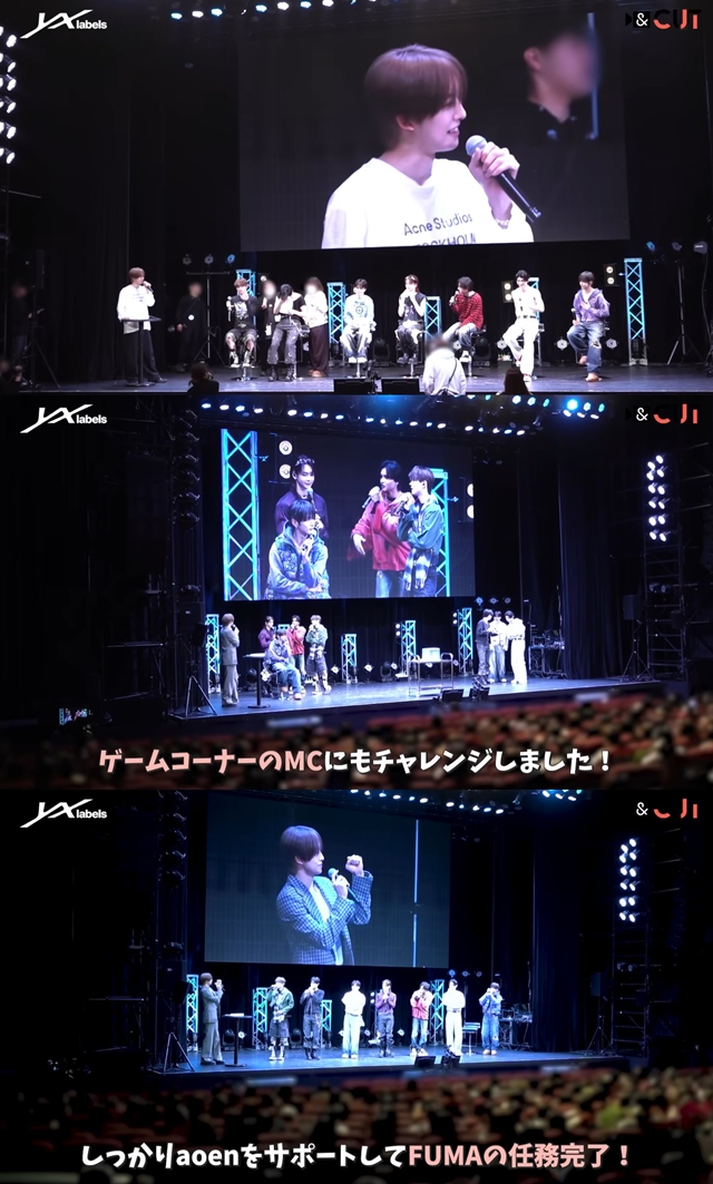 후마는 대본을 꼼꼼히 확인하고 발음 연습을 반복하며 완벽한 진행을 위해 집중했다. 본격적인 행사에서 그는 아오엔 멤버들과 함께 유쾌한 토크를 이어갔으며, 특히 멤버들과 함께 댄스 챌린지 촬영을 진행하며 훈훈한 케미를 선보였다.