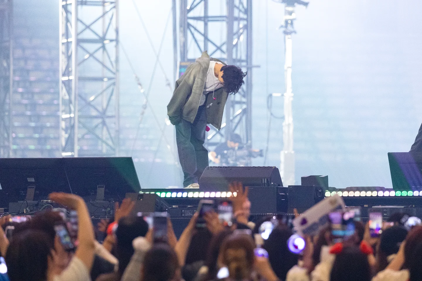 가수 진이 최근 공식 행사에서 팬들에게 인사를 전했다. 진은 무대 위에서 연한 청색 재킷과 청바지를 착용한 채 관객들을 향해 정중히 인사하며 몸을 숙이는 모습을 보였다. 무대 조명이 밝게 비추는 가운데, 관객들은 스마트폰을 들고 그의 모습을 담아내며 따뜻한 반응을 보였다.