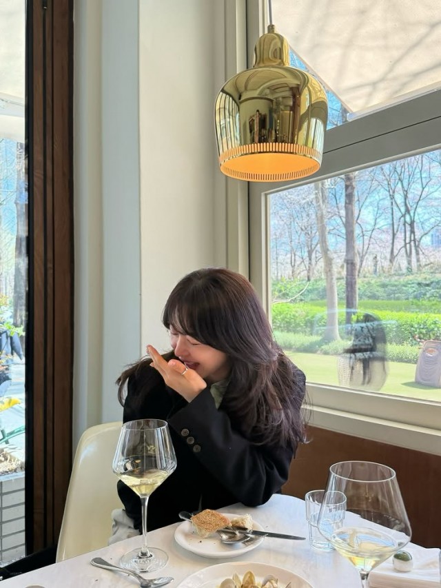 성유리는 최근 자신의 SNS에 "어느 멋진 날?"이라는 간단한 문구와 함께 여러 장의 사진을 게재했다. 사진 속 그는 검은색 재킷을 입고 카페 내부에서 와인 잔을 곁에 둔 채 미소를 지으며 앉아 있다. 창문 너머로 보이는 나무와 자연광이 따뜻한 분위기를 더하고 있다. 또 다른 사진에서는 손으로 얼굴을 살짝 가린 채 웃음을 참으며 고개를 숙인 모습이 자연스러운 매력을 자아냈다.