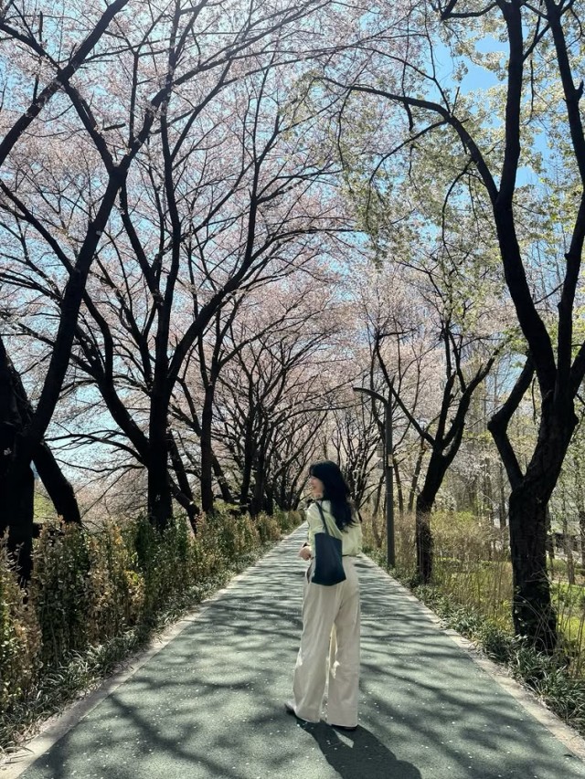 이어 성유리는 흰색 상의와 넓은 바지를 착용한 채 벚꽃이 흐드러진 산책로에서 뒤돌아보며 걸어가는 모습을 공개해 봄날의 여유로운 분위기를 한껏 담아냈다. 그가 들고 있는 가방과 자연스러운 포즈가 돋보인다.