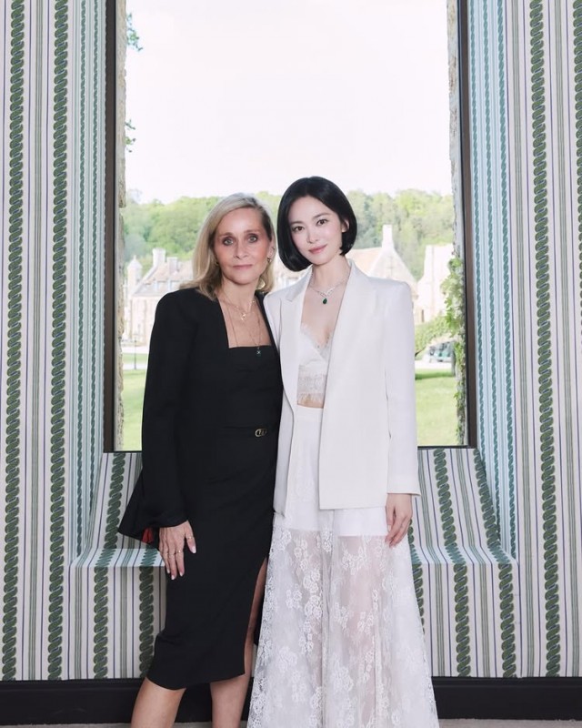 특히 송혜교가 착용한 주얼리에는 @chaumetofficial의 태그가 함께 올려져 눈길을 모았다. 이는 그녀가 프랑스 명품 주얼리 브랜드 쇼메(Chaumet)의 주얼리를 착용하고 있음을 알 수 있다. 고급스러우면서도 여성스러운 스타일과 완벽하게 어우러지는 아이템으로 송혜교만의 고급스러운 분위기를 한층 끌어올렸다.