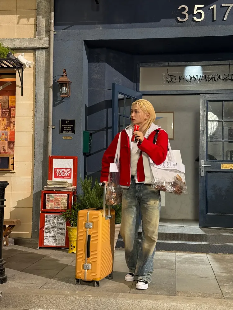 특히 금발 머리와 귀걸이로 포인트를 준 스타일링이 돋보였으며, 음료수를 즐기며 가방을 들거나 편안한 자세로 휴식을 취하는 장면들이 팬들의 큰 호응을 얻고 있다. 필릭스는 최근 여러 공식 행사와 화보 촬영으로 바쁜 일정을 소화하는 가운데, 일상에서도 특유의 밝고 친근한 매력을 꾸준히 보여주고 있다.