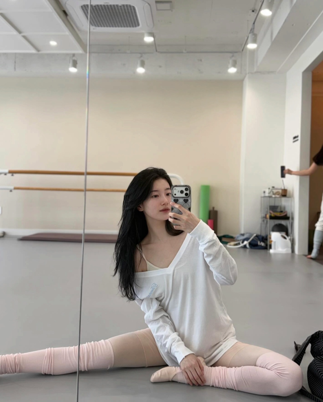 수지가 발레 연습실에서 촬영한 사진을 26일 자신의 SNS에 공개했다. 공개된 사진 속에서 수지는 발레 바 앞에서 다리를 양옆으로 뻗으며 스트레칭을 하고 있었으며, 거울을 마주보고 중심을 잡고 앉아 있는 모습이 담겼다.
