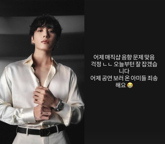 앞서 방탄소년단은 미국 플로리다주 탬파 레이먼드 제임스 스타디움에서 'BTS 월드투어 아리랑 인 노스 아메리카(BTS WORLD TOUR ARIRANG IN NORTH AMERICA)' 공연을 진행했다. 이날 '매직샵' 무대에서 음향 이상이 발생한 것으로 알려졌다. 정국은 해당 무대에서 음정이 흔들리는 모습이 포착되며 음향 문제가 제기되자, 직접 SNS를 통해 사과와 함께 자신의 심경을 밝혔다.