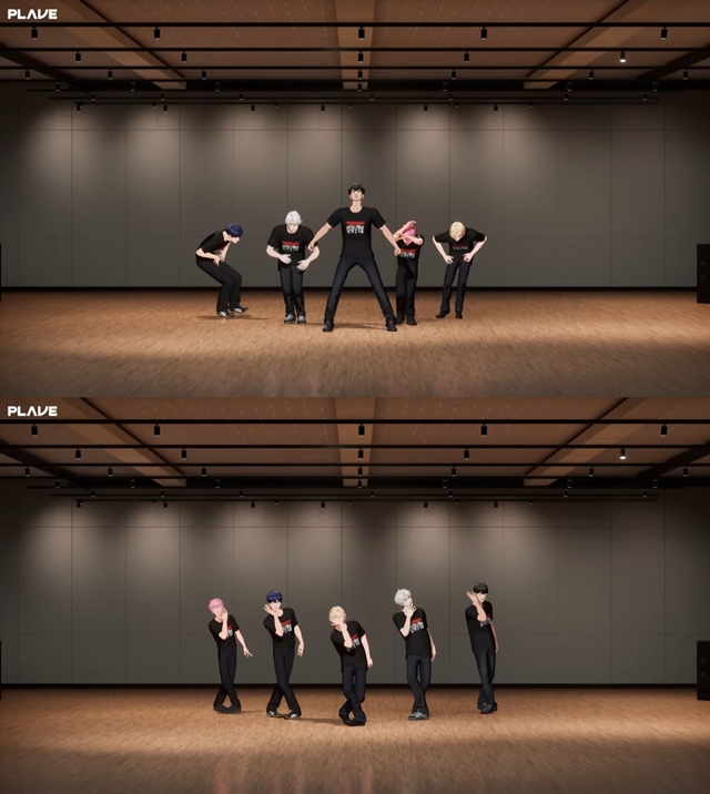 본격적인 비트가 흘러나오자 플레이브는 특유의 역동적이고 파워풀한 퍼포먼스를 가감 없이 쏟아냈다. 일사불란한 동선 이동과 멤버들 간의 완벽한 호흡이 돋보이는 '칼군무'는 가상과 현실의 경계를 허무는 플레이브만의 매끄러운 디테일과 엄청난 연습량을 고스란히 증명했다. 무대 위 화려한 세팅이 아닌 편안한 연습복 차림임에도 불구하고, 멤버들이 뿜어내는 힙한 에너지와 치명적인 아우라가 압도적인 몰입감을 선사한다.