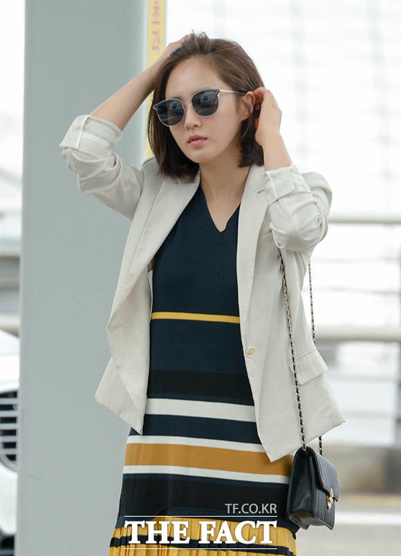 그룹 소녀시대의 유리가 화보 촬영차 스페인 바르셀로나로 출국하기 위해 13일 오전 인천국제공항 출국장으로 향하면서 포즈를 취하고 있다. /인천국제공항=김세정 인턴기자[더팩트ㅣ인천국제공항=김세정 인턴기자] 그룹 소녀시대의 유리가 화보 촬영차 스페인 바르셀로나로 출국하기 위해 13일 오전 인천국제공항 출국장으로 향하며 포즈를 취하고 있다.